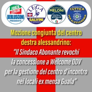 I gruppi consiliari di centro destra chiedono quindi che il Consiglio Comunale si esprima al più presto sul tema, e impegni Sindaco e Giunta a revocare entro 30 giorni la convenzione tra il Comune di Alessandria e l’Associazione Welcome ODV per l’istituzione del nuovo centro d’incontro “Casa delle Donne transfemminista queer”.