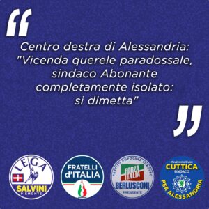 Centro destra di Alessandria: “Vicenda querele paradossale, sindaco Abonante completamente isolato: si dimetta”